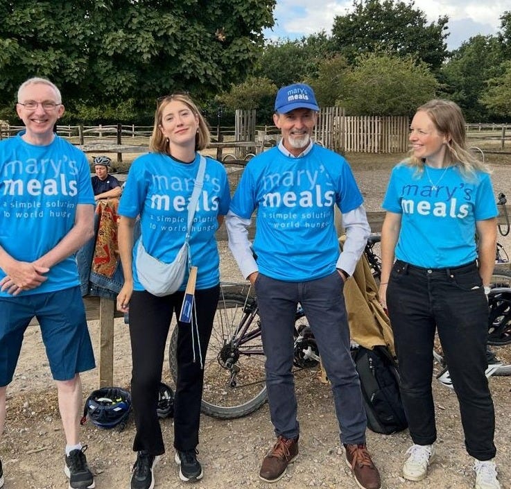 Swiftly following on from the pilgrimage, I shall be jumping onto a tandem to cycle from London to Brighton for Mary’s Meals. This is the one that is making me nervous, to be honest. I’m not a cyclist and I haven’t really done enough training, but we’ll see how it goes. The main motivation, of course, is ensuring that we feed as many children as we possibly can in poor communities around the world in their places of education. £19.15 feeds a child for a whole school year, so we’re hoping that as many people as possible will sponsor us. If you’d like to do so, here’s our JustGiving page.
